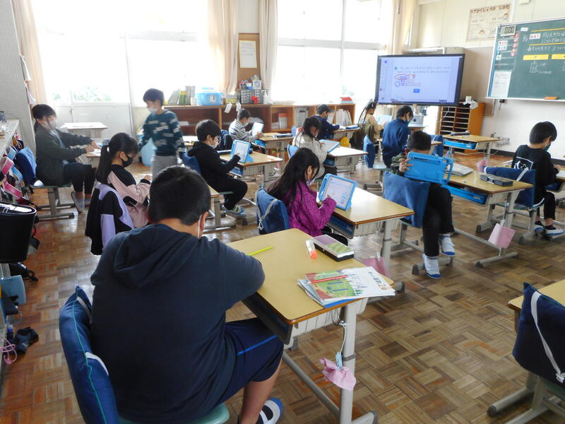 プリントも終わった子はタブレットの問題に挑戦していました。3年生に向けて学習に取り組む姿も育ってきています。子供たちのがんばりが見られた授業でした。