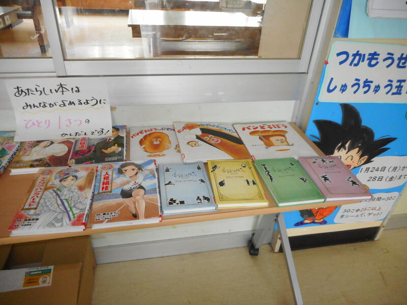 本年度PTAで話し合い、「子供たちのためになる使い方をしよう」ということで、本を買っていただきました。