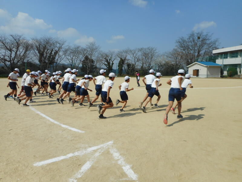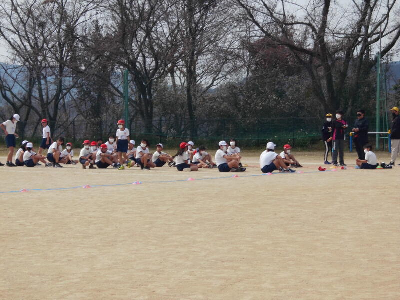 今日、各学年部で練習をしました。持久走の時は走る直前でマスクを外し、走り終わったら運動場を歩いて呼吸を整え、マスクをしてすわる。座り方も座る場所を示すポイントに座ることにしています。