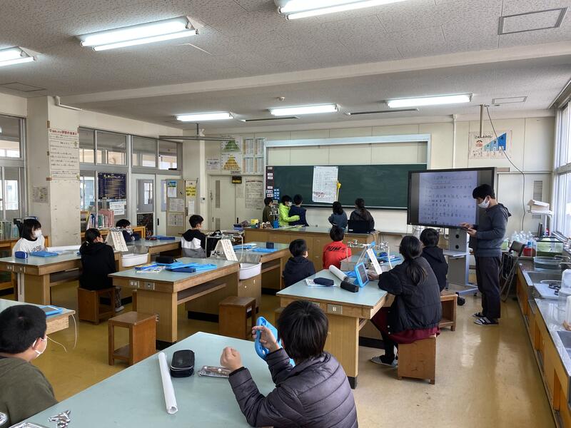 授業中子供たちは、聞いている人に分かりやすく伝えています。発表を聞いた子供たちは、質問や感想などを発表していました。互いに学び合う姿が見られた理科の授業でした。