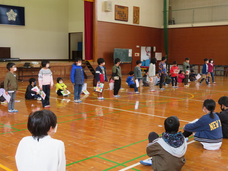 1年間役員として龍野小をひっぱてくれた6年生から一言感想を発表してもらい、新役員の子供たちが感謝状を渡しました。6年生のおかげで、龍野小は笑顔あふれ元気いっぱいの学校になりました。本当にありがとうございました。