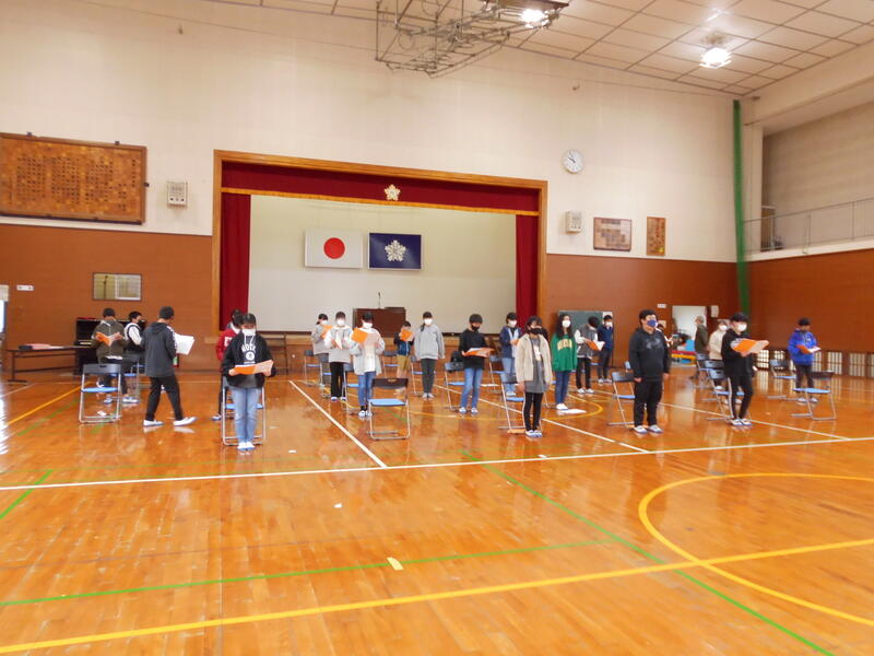 始業式では、「ていねいに ていねいに」と「感謝の3学期」について話をしました。3学期は次の学年の準備の学期です。岩永先生から、3学期気を付けること、宗先生から「自分を守る みんなを守る」感染対策について話していただきました。