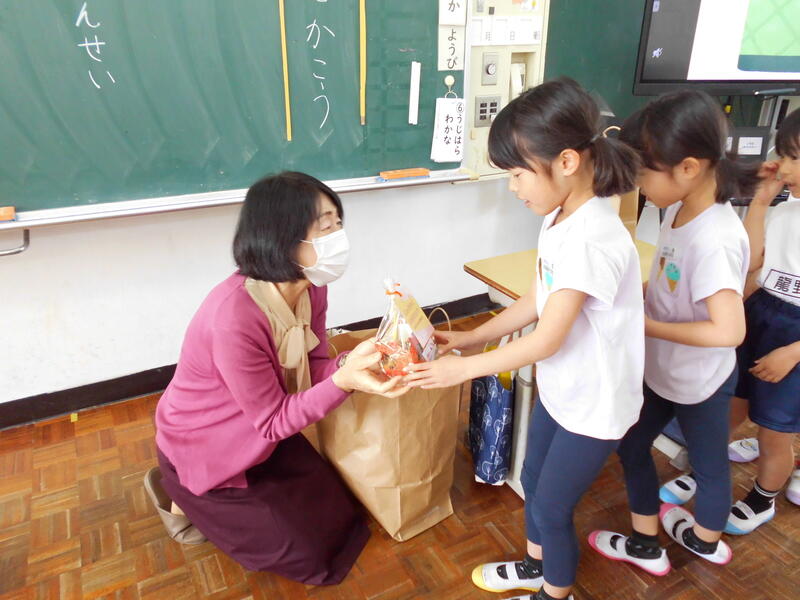 4月18日(火)桜の丘養護老人ホームの方々から、1年生に鉛筆立てのプレゼントがありました。毎年、頂いているプレゼントですが、コロナ禍の前までは、老人ホームの方々から子供たちに直接、渡されていたとのこと。本当にありがたいことです。残念ながら、今年も代表の方から子供たち一人一人に渡していただきました。1年生の子供たちは、突然のプレゼントに大喜びでした。龍野の子供たちは、地域の方々に愛されていることを実感しました。本当にありがとうございました。