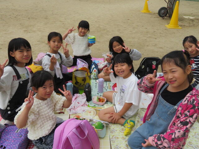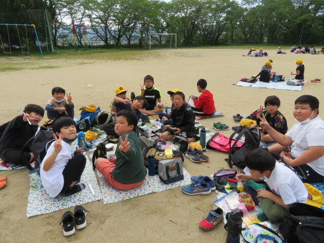 4月26日(水)3時間目に1年生の歓迎会を行いました。児童会と6年生を中心としてクイズやゲームなど、楽しい時間を過ごしました。1年生一人ずつの自己紹介では、「わたしの頑張りたいことは・・・・」「ぼくの好きなものは・・・」など、みんな上手に紹介ができました。全校児童によるじやんけん列車では、なんと!1年生のきむらさんがチャンピオンになりました。遠足は、残念ながら前日の雨のために予定を変更し、学校周辺の探検と運動場でのお弁当、みんなで遊ぶという内容に変更しました。変更となりましたが、みんな笑顔で活動していました。本当に子供たちの笑顔は可愛いものです!