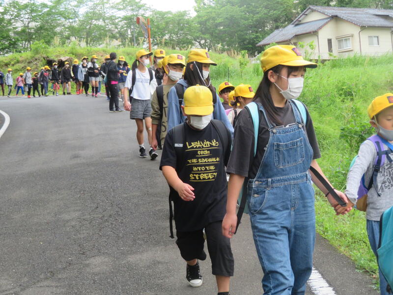 5月18日(木)、19日(金)の一泊二日で県立豊野少年自然の家に行き、集団宿泊教室を行いました。一日目、出発式を運動場で行い、バスに乗り込んだ子供たちを龍野小のみんなが見送りました。現地に到着し、入所式を行いましたが、外は曇って小雨が降っていました。しかし、活動ができる状態でしたので、ツリーハンティングを行いました。昼食後は、白旗小の子供たちと仲良くニュースポーツをして汗を流しました。入浴と夕食後は、プラホビー作りを行った子供たち。一日目の楽しい活動を終え、10時に就寝しました。二日目、午前中は雨が降っておらず、豊野の史跡を巡るウォーキング(約5km)を行いました。昼食後は、フォトスタンド作りを行いました。予定していた活動を終え、退所式後に学校に到着した子供たち。解散式の後に教室に入ると、6年生が5年生教室を掃除し、黒板にメッセージを書いて待ってくれていました。5年生は大喜び。6年生の子供たちの思いやりと優しさを感じた、楽しい集団宿泊教室でした。