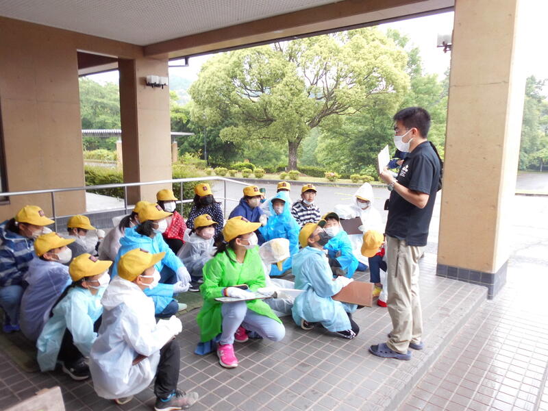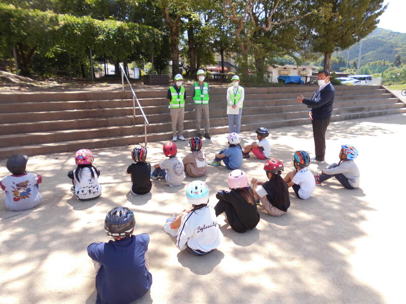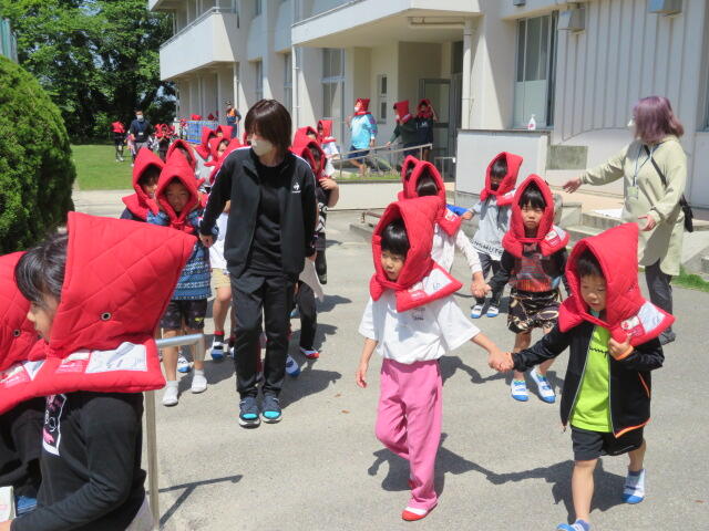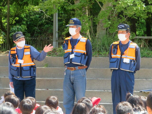 5月1日(月)3校時に地震避難訓練を行いました。地震発生の放送で、机の下に隠れた子供たち。地震の揺れが収まると、担任の先生の指示により、頭巾をかぶって安全な外へ迅速に避難しました。「おかしも」=「お」おさない、「か」かけない、「し」しゃべらない、「も」もどらないを実践しながら、避難できました。「防災士」の市下様、木村様、佐村様の3名の方が、避難のご指導に来てくださいました。代表として、市下様に登下校時における地震発生の場合の避難の仕方についてご指導を頂きました。学校では、子供たちに「自分の命は、自分で守る行動をしましょう!」といつも伝えています。
