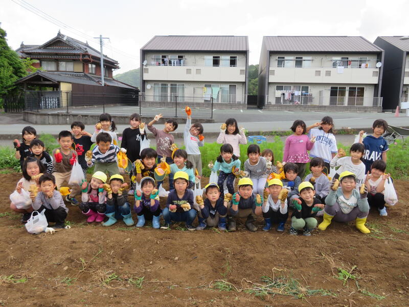 5月下旬、竜野保育園から1年生の児童に「一緒にジャガイモ掘りをしませんか?」というお誘いあり、大喜びの子供たち。体育服、帽子、軍手、水筒準備をして、元気に出かけました。竜野郵便局の側にある畑に入り、ジャガイモの収穫を始めると、土の中から大きなジャガイモがたくさん出てきました。「わっ!大きい。」と、歓声をあげていた子供たち。たくさんのジャガイモを頂き、お家に持ち帰りましが、さて、お家でどんな料理になったでしょうか。美味しかったことでしょう。