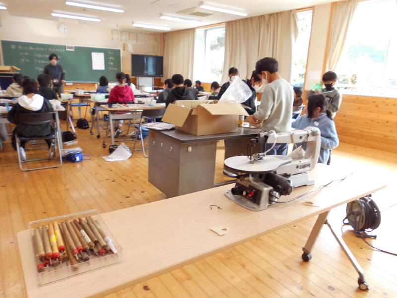 今、5年生は「糸のこで形をつなげよう」という学習をしています。