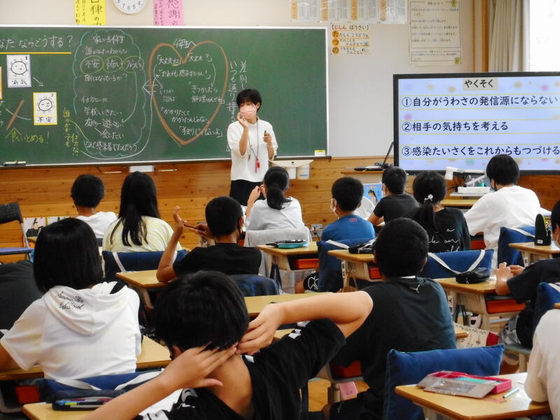新型コロナ感染症について自分事として考え、龍野小で増やしたい言葉について考えました。