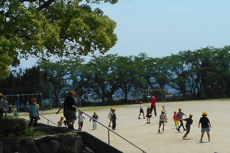 子どもたちが楽しみな昼休みでは、養護教諭の宗先生に放送をしていただき「三分間の給水タイム」を取り入れました。「給水タイム」が終わるとまた元気いっぱい走り回る子どもたちの姿が見られました。永野先生をはじめ職員も、運動場にでて子どもたちと一緒に走り回っていました。