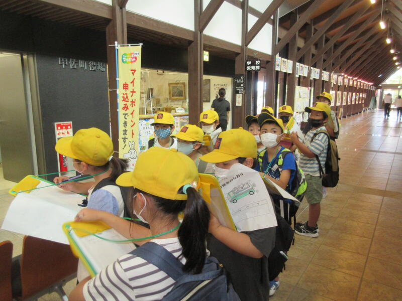 15日3年生は社会科見学に行きました。甲佐町役場、図書館、給食センターそしてマルエイの見学です。
