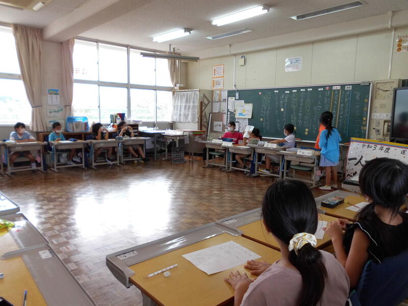 司会グループの進行の中、子供たちが自分の考えを伝え合っていました。みんなが納得する意見を話し合う姿が印象的でした。みんなで考える姿が素敵な4年生の学級会です。