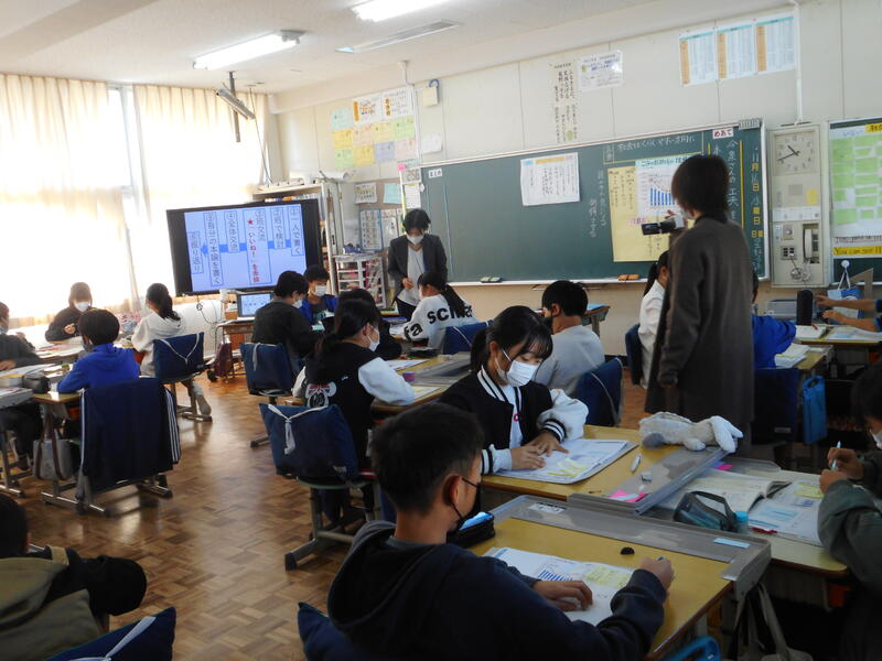 5年生は、国語の授業で「グラフや表を用いて書こう」という学習をしています。根拠のある分かりやすい分掌にするためにグループで話し合いながら、自分の文章につないでいました。とても真剣に書き進める5年生の姿が印象的でした。