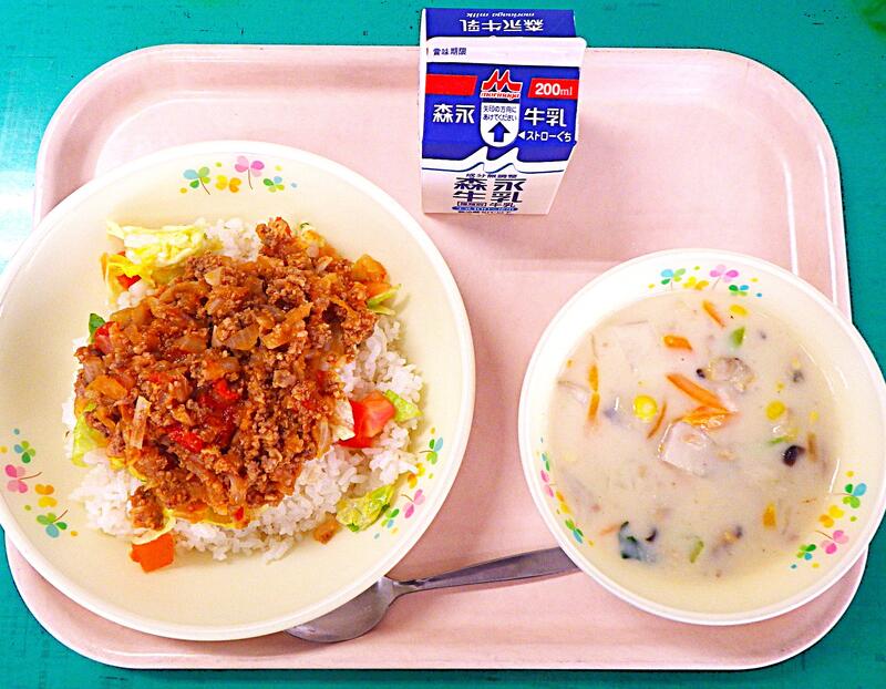 【3/4本日の献立】セルフタコライス・あさりのクリームスープ・牛乳