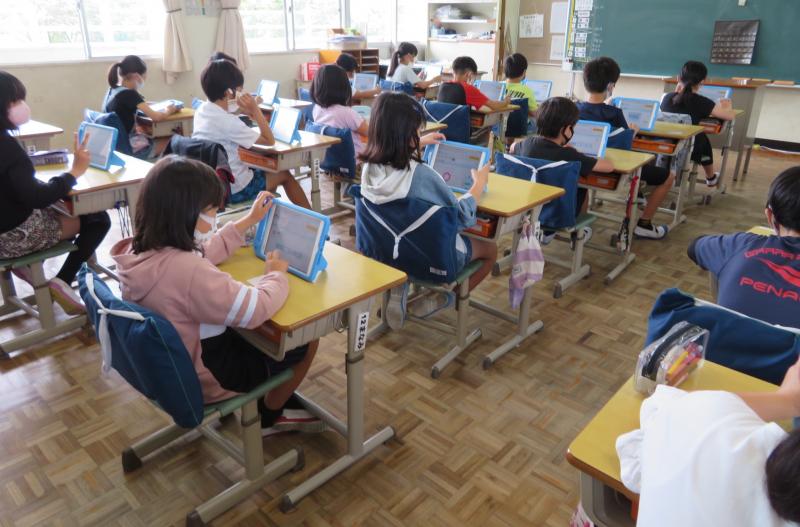 今日初めてタブレットを持ち帰ります。ご家庭でも子どもたちの様子を見守ってください。