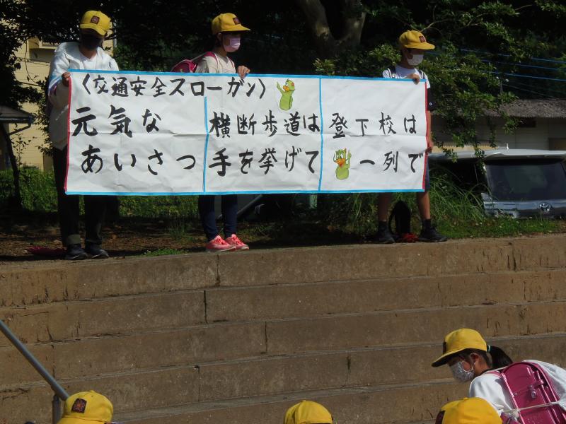 誓いの言葉は3つ。「元気なあいさつ 横断歩道は手をあげて 登下校は一列で」です。