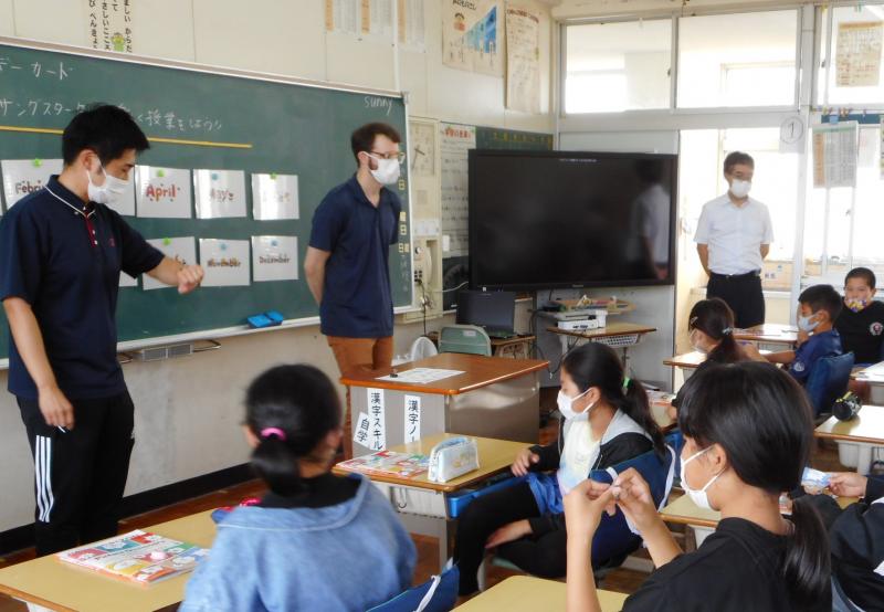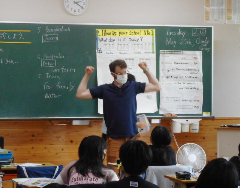 また、午後からは5年間甲佐町でALTをしてくださったサングスター先生の最後の授業です。サングスター先生は、いつもパワフルで子どもたちに元気と外国語の楽しさを伝えてくださいました。サングスター先生と学習することで、龍野っ子も外国語が好きになりました。