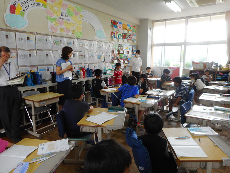 水泳時も暑さ対策で、「見学の児童は教室で自習(読書)しよう」「これから体育館で準備運動をしよう」など、対策を考えて取り組んでいます。