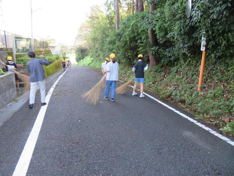 20日朝から木々や葉っぱなどがたくさん飛散していました。その様子をみて教頭先生が片付けをしていると
