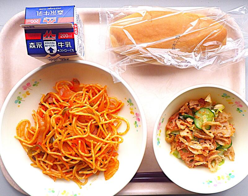 【1/21本日の献立】ナポリタン・レンコンチップスサラダ・コッペパン・牛乳