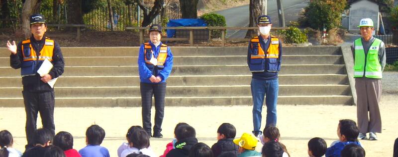 【1/20火災避難訓練】今日は、火災避難訓練をおこないました。これまで、水災、地震の避難訓練をおこなっています。今回は、防災士、ドラパト隊4名の方々にも訓練を視察いただき、訓練の最後に児童、職員にお気づき等のお話をいただきました。迅速安全な災害避難の仕方をしっかりと学ぶことができました。防災士、ドラパト隊の皆さま、誠にありがとうございました。