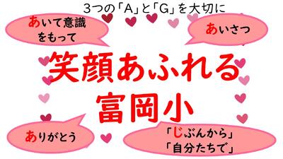 みんなで感謝の気持ちを大切にして、たくさんのことに「感じて」「考えて」「行動する」素敵な富岡小をつくっていきましょう。校長先生の話を終わります」