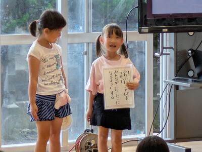 今日の朝タイムは、なかよし集会がありました。発表の様子です。各学年学級の人権宣言は次回紹介します。