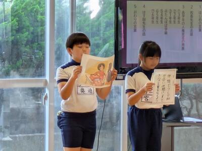 5年生は古典。平家物語。「祇園精舎の鐘の声、諸行無常の響きあり。娑羅双樹の花の色、盛者必衰の理をあらわす。」説明って難しいですよね。暗唱のテストがあったので、今でも諳んじきれるのですが.....
