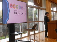 次に、保健の先生からは「ふ」「ゆ」「や」「す」「み」を「あいうえお作文」にして次のような話がありました。