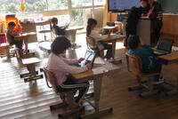 ドリル学習の一環としての活用。苓北町ではイーライブラリーというソフトで主に復習ドリルを繰り返し行っています。