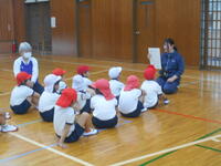1・2年生は合同体育です。体育の時のルールやきまりについてのオリエンテーションです。