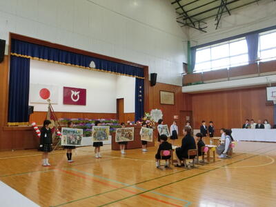 今日は入学式。5人の新入学児童が、しっかりとした足取りで入場しました。