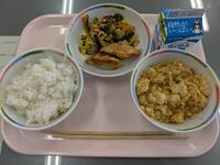今日の給食は、中華三昧。麻婆豆腐、餃子、棒々鶏です。おいしくいただきました。
