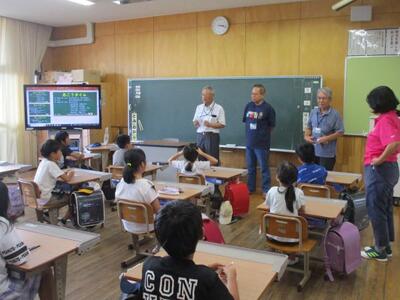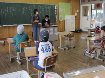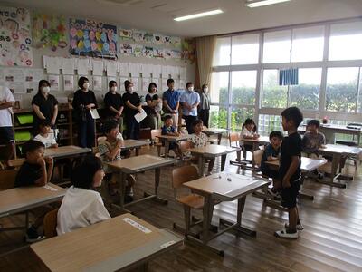 今年度は6名の方が学習ボランティア(子供たちは「丸つけ先生」と呼んでいます)として登録してくださいました。1年生、2年生の子供たちへの紹介が終わると、子供たちは算数のドリルやプリントに取り組みます。