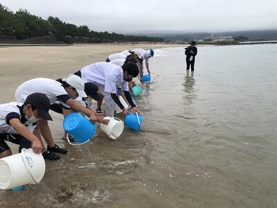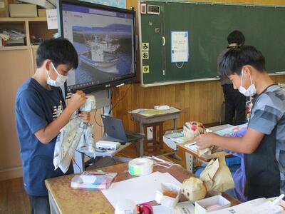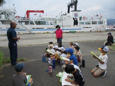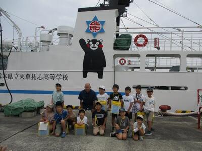 10月5日(木)。探検最終日は、天草拓心高校の実習船「熊本丸」見学でした。船長さんからいろいろなお話を聞くことができました。インタビューが終わった後も、みんな一生懸命船のスケッチをしていました。