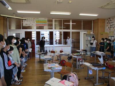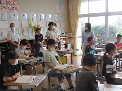 最後に、6年生みんなで5年生教室を訪れ、自分たちの留守中、登校班のお世話等よろしくお願いしますと挨拶。迎えた5年生も、2日間富小の最高学年として頑張るぞと言う意欲を高めていました。