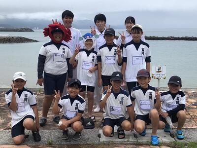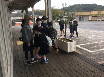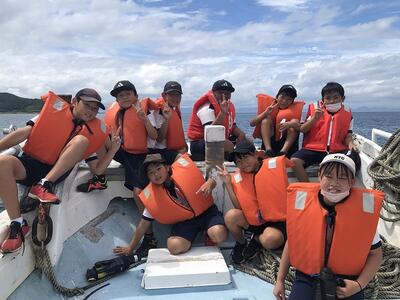 午前7時30分、富小6年生12名全員元気に鬼池港に集合。