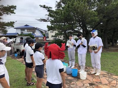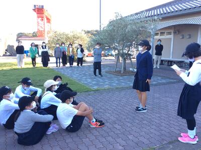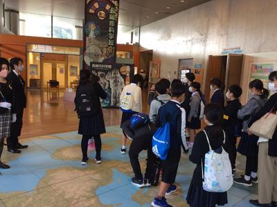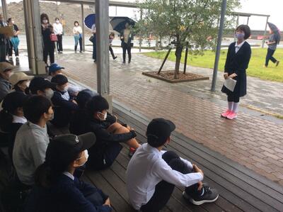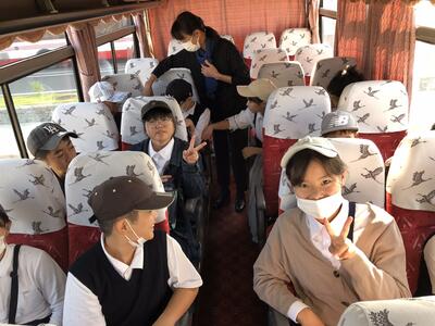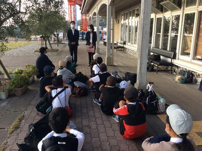 10月3日(火)。この日はスクールバスを使って4カ所の見学でした。まずは、「漁業協同組合」。質問事項も事前にまとめ、インタビューの仕方も学校でほかの先生方にチェックしてもらいました。当日は緊張しながらも立派にできたようです。