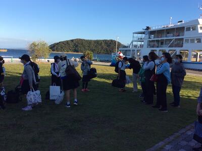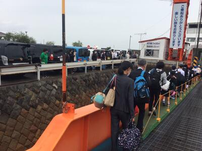 朝早くからたくさんの保護者の方に見送られ、フェリーに乗り込みます。