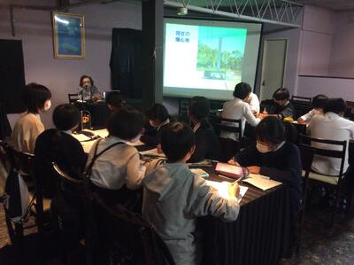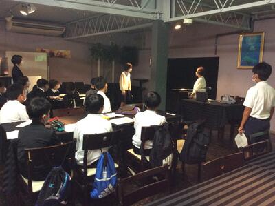 午前11時頃、最初の学習の場であるBGカフェに到着しました。ここでは、被爆体験者でもある松尾幸子さんのお話を伺いました。松尾さんは、山里小学校5年生の時に被爆されました。戦争、原爆投下の時のお話は、この世界で起こったとは思えないような悲惨なものでした。今思い出しても辛い体験を多くの人に伝えようと活動されている松尾さんは、本当に強い方だと思いました。そのお話を聞かせてもらった私たちは、戦争原爆の悲劇を受け止め、今後平和のために何ができるのかをしっかり考えていかなければならないと感じました。