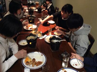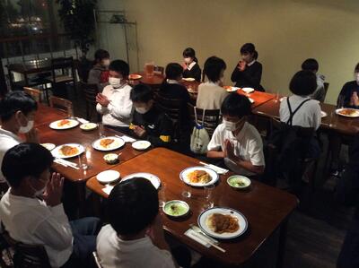 平和講話が終わると、2階に場所を移してお楽しみの昼食タイム。旅行はじめてのメニューはトルコライス(トルコの国名は関係ないそうです。)とサラダ。黙食ではありますが、みんな楽しそうに食べていました。
