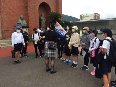 たっぷり科学を楽しんだ子どもたちは12時前、長崎市科学館を出て、いよいよ最後の学習地、出島に向かいます。