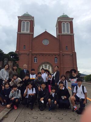 午後からは、浦上天主堂、如己堂、山里小学校などを歩いて回りながら平和学習を進めていきました。