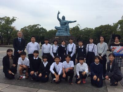 そして、この日一日いろいろな場所を巡って平和について考えたことを発表する平和集会を、長崎追悼記念館で行いました。事前に学習してきたこと、この修学旅行で実際に見学したり、聞いたりして感じたことを立派に発表しました。特に記念館に響き渡る子どもたちの「折り鶴」の歌は素晴らしかったです。