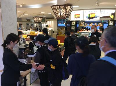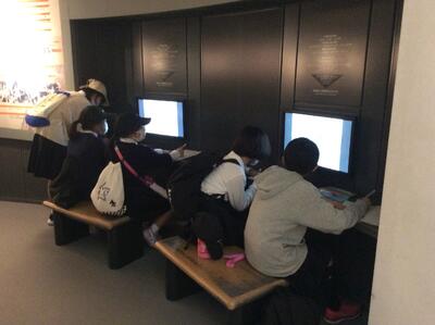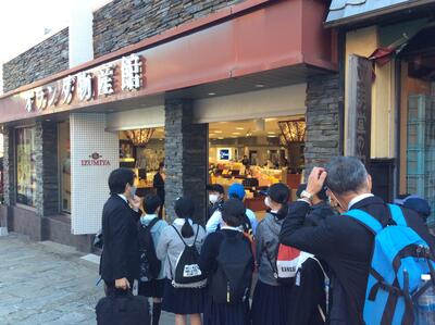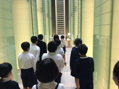 朝食も、もりもり食べていました。この修学旅行で一番感心したのは、子どもたちの早め早めの行動です。班ごとに朝食を済ませ、部屋に帰って出発の準備をすることになっていたのですが、何と先生たちが朝食を終え、部屋に戻ろうとした時すでに子どもたちはホテル前に集合していたのです。5分前の行動よりさらにその5分前にみんなが動くので、予定していた以上の活動ができました。退館式を終え、2日目の活動に向けて出発。