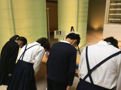 一生懸命メモをとっていました。追悼記念館では、平和集会を行い、平和の誓いを全員で宣言しました。