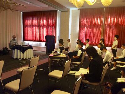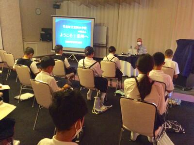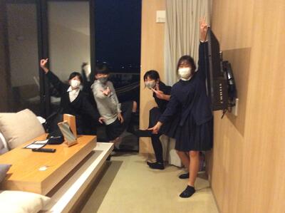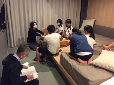 1日目の学習を立派に終えて、子どもたちが最も楽しみにしているホテルでの時間が始まります。とてもおしゃれで素敵なホテルに子どもたちのテンションも高まります。入館式を行い、部屋に入ります。