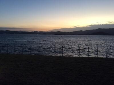 午後からは、いろいろな場所を歩いて回り、中身の濃い平和学習ができました。その様子は、速報③でお知らせします。もうすぐホテルに着きます。きれいな夕日がバスの中から見えています。