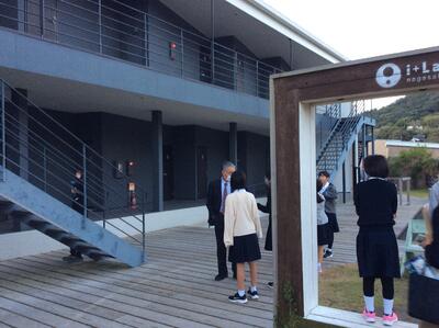次は、山里小学校へ。長崎の町は階段や坂が多く、足腰がかなり鍛えられました。