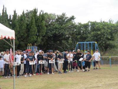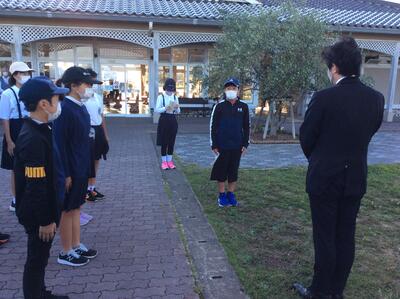 すべての学年が終わり、タイムを集計して閉会式です。各学年の1位になった男女の子供たちが紹介されました。また、走る前に予想した宣言タイムに近かった子供たちも紹介されました。今年はピタリ賞(金賞)が2人いました。そして、今大会新記録も生まれました。最後に、応援してくださった保護者の方々にみんなでお礼を言って持久走大会を終えました。
